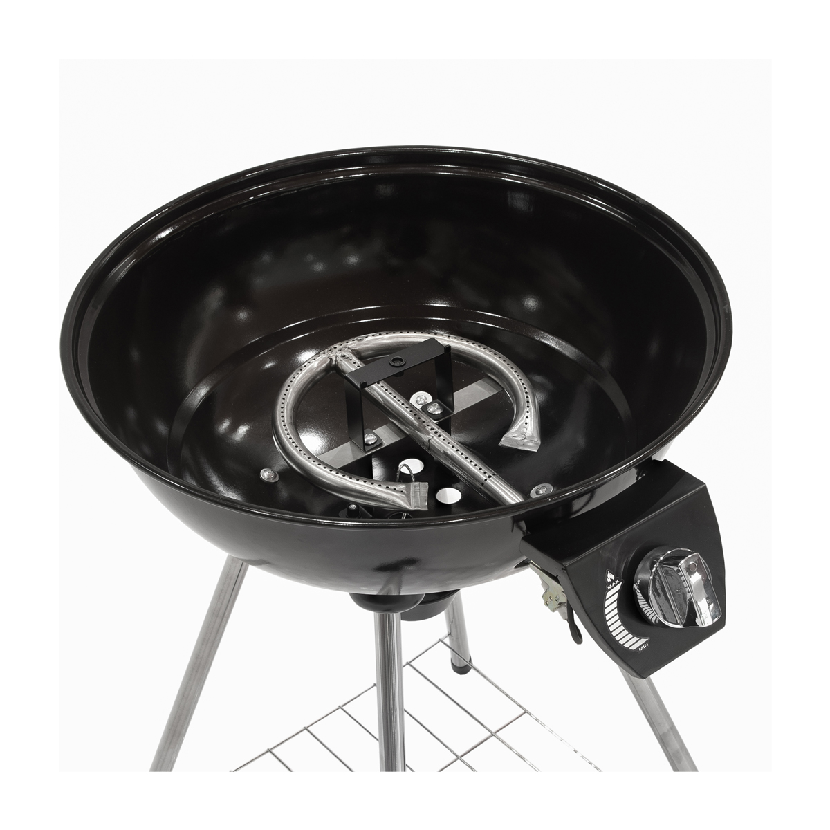 Διάμετρος 48εκ. Ύψος ψησίματος 75εκ. Ύψος με καπάκι με χειρολαβή 1μ. Νέου τύπου χειρολαβή 12εκ.για να μην καίγεσαι. Δοχείο συλλογής λίπων. 2 Ρόδες για εύκολη μεταφορά. Στρογγυλός καυστήρας 2,9 kw. Αντί-φλογιστικό καπάκι.