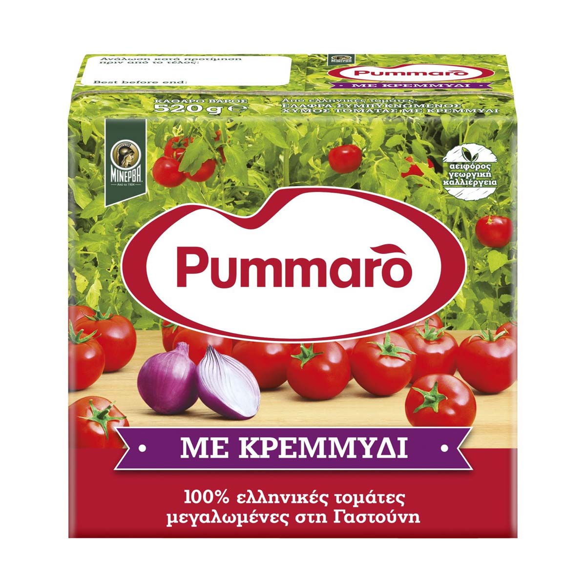 Το Pummaro διάλεξε τις τομάτες, χαρίζοντας στο φαγητό σας τη γεύση και το άρωμα από 100% Ελληνικές τομάτες και πρόσθεσε κρεμμύδι για πιο πικάντικη γεύση. Δοκιμάστε το σε μακαρονάδες, λαδερά, κοκκινιστά, όσπρια, αλλά και για υπέροχες σάλτσες! Σιγοβράστε σε χαμηλή φωτιά με τα μυρωδικά της αρεσκείας σας!