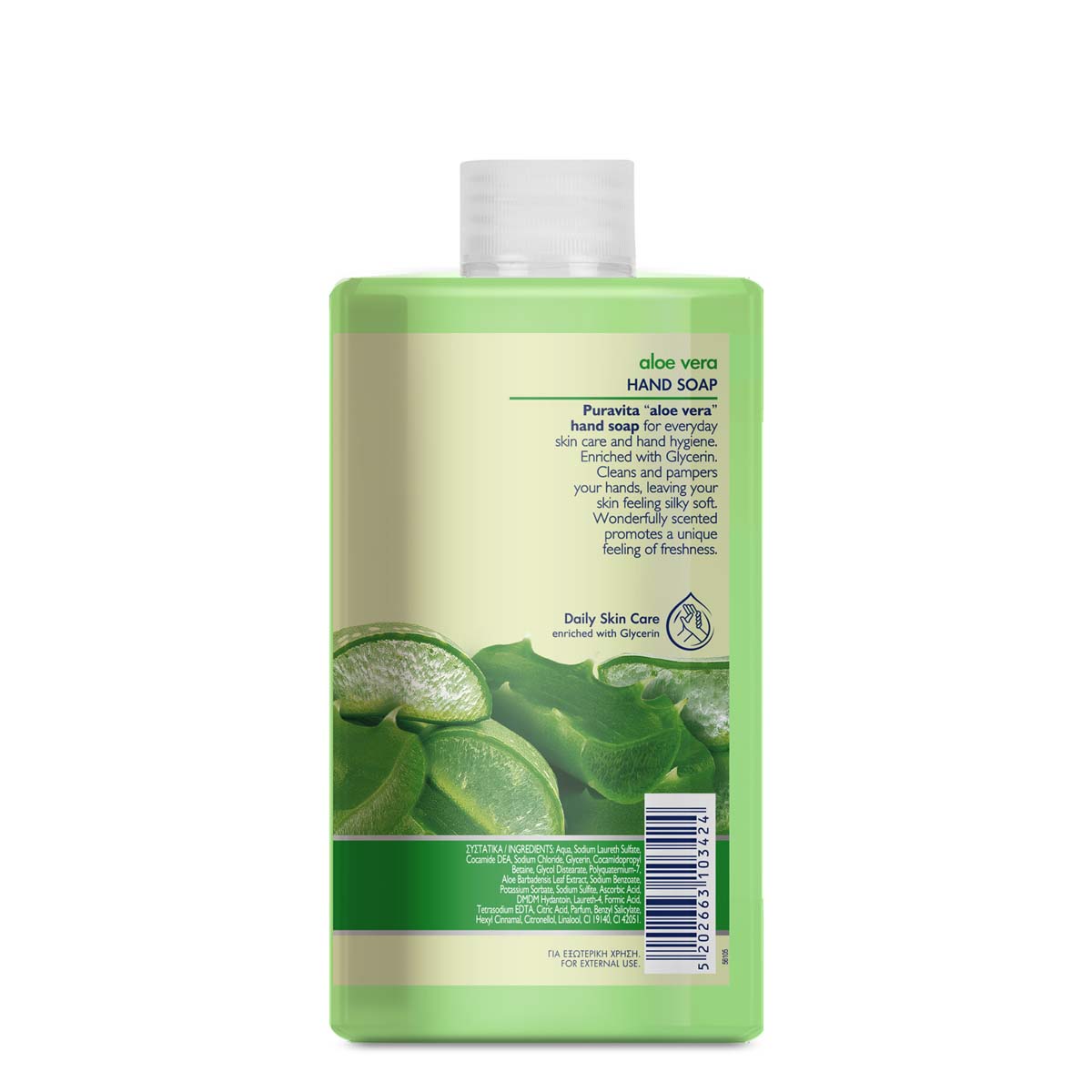 Καθαριότητα και καθημερινή φροντίδα των χεριών σας με το υγρό κρεμοσάπουνο Puravita “αλόη βέρα”. Η σύνθεσή του είναι εμπλουτισμένη με Γλυκερίνη. Καθαρίζει αποτελεσματικά και περιποιείται τα χέρια, χαρίζοντας στην επιδερμίδα μοναδική απαλότητα. Με υπέροχο άρωμα για αίσθηση φρεσκάδας.