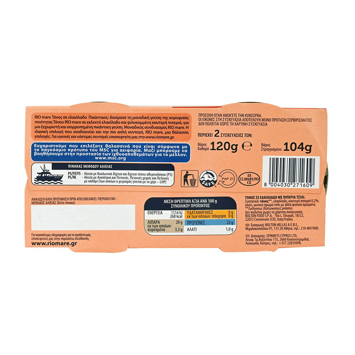 Rio Mare Τόνος Σε Ελαιόλαδο Πικάντικος 2 x 120 gr