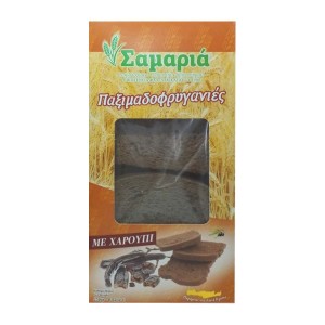 Κρητικές παραδοσιακές χειροποίητες Παξιμαδοφρυγανιές με Χαρούπι. Διπλοφουρνιστές με μοναδική γεύση φρυγανιές, χαμηλές σε λιπαρά, αποτελούν ιδανική επιλογή για ένα ελαφρύ, εύπεπτο και ισορροπημένο γεύμα για όλη την οικογένεια κάθε στιγμή της ημέρας.