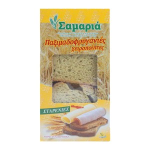 Παραδοσιακές Παξιμαδοφρυγανιές Σιταρένιες με μοναδική γεύση και συνταγή Κρητικού παξιμαδιού. Χειροποίητες αφράτες με τραγανή υφή παξιμαδοφρυγανιές, υψηλής διατροφικής αξίας, απολαμβάνονται ευχάριστα κάθε στιγμή της ημέρας με γιαούρτι, μέλι, βούτυρο και μαρμελάδα.