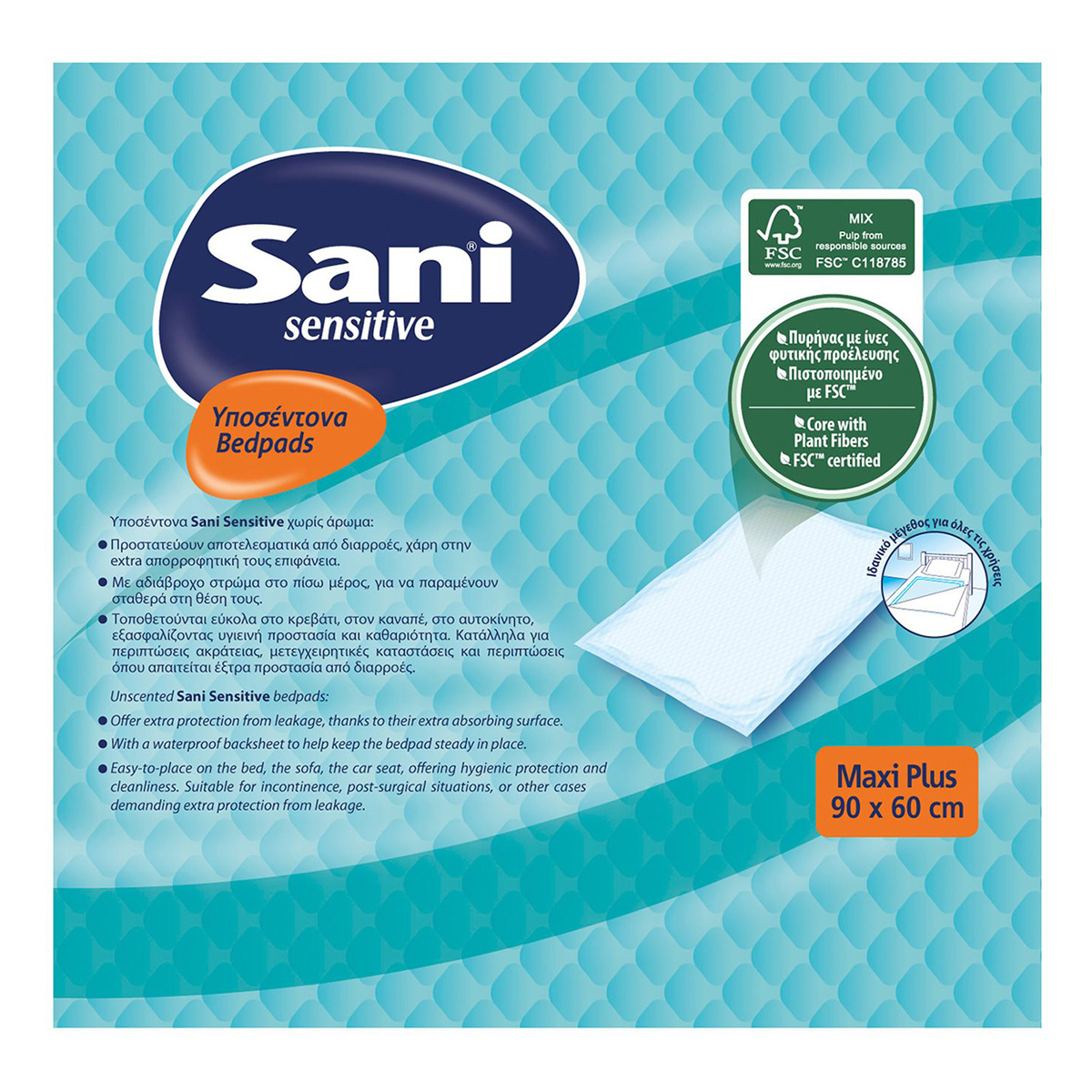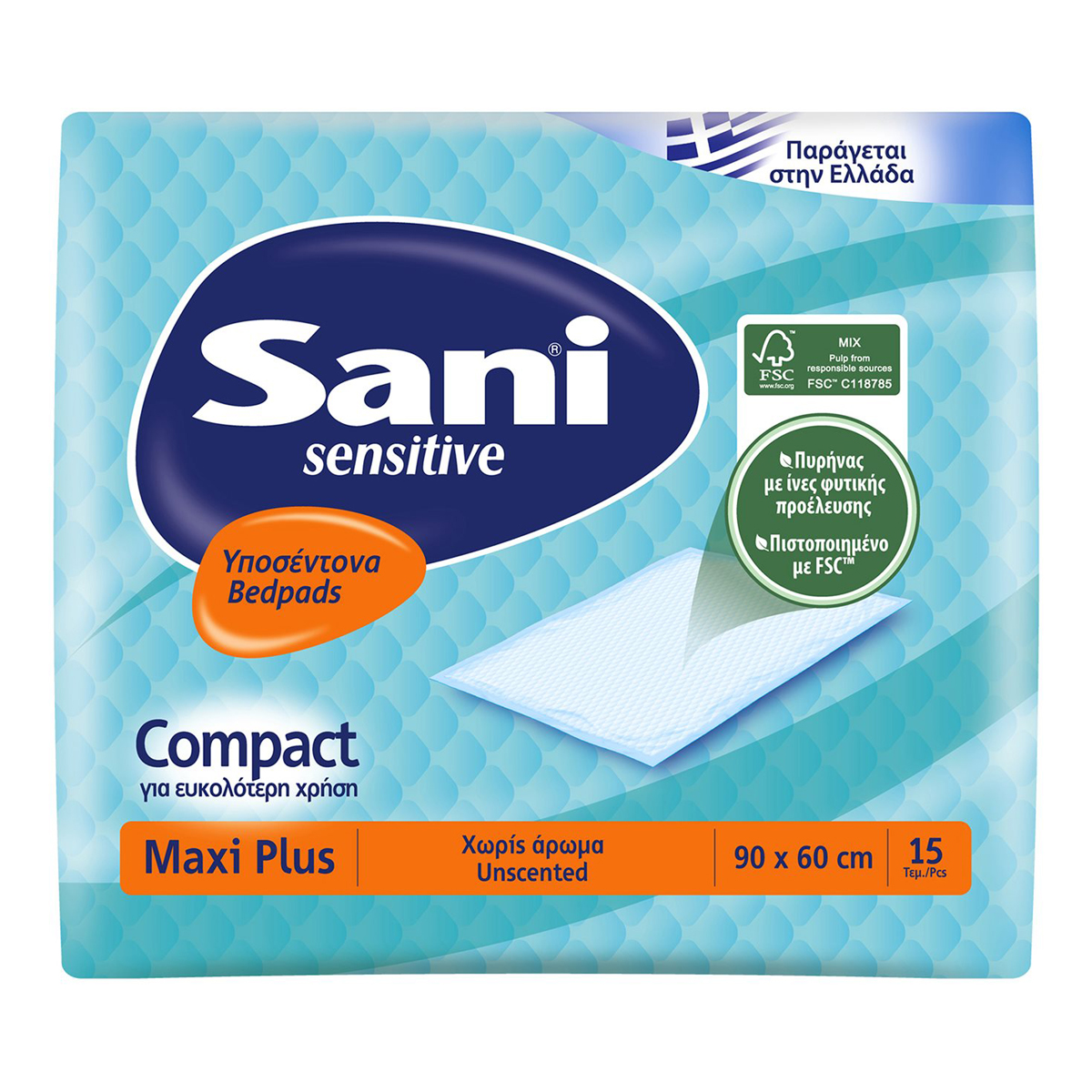 Sani Sensitive Υποσέντονα Χωρίς Άρωμα Maxi Plus 90 x 60 15 Τεμάχια