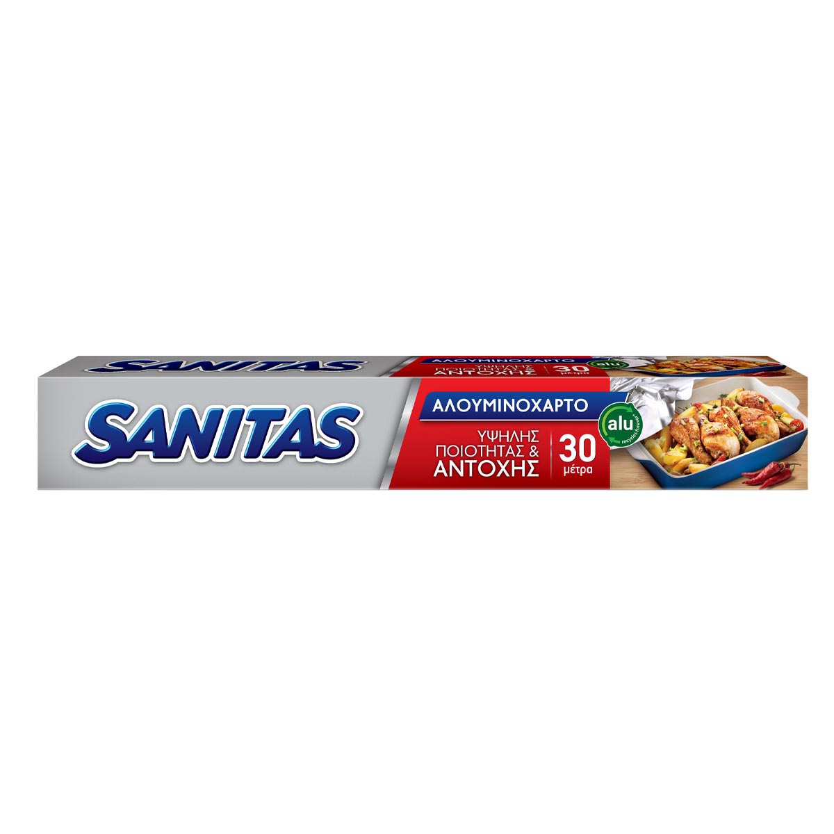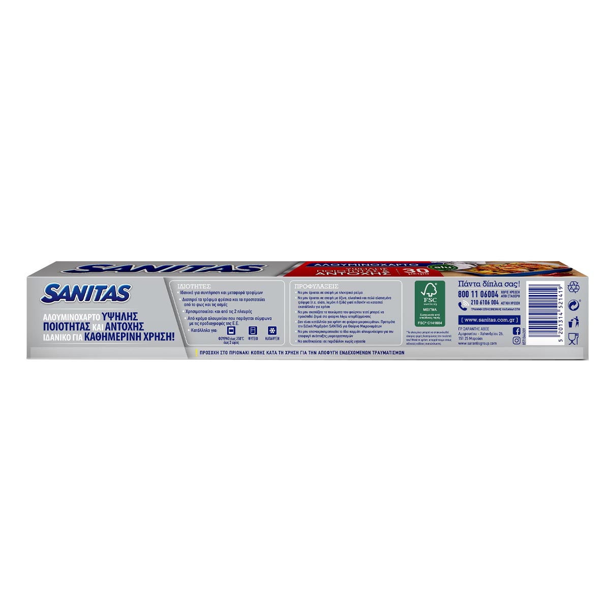 To αλουμινόχαρτο Sanitas είναι ιδανικό για τη συντήρηση και μεταφορά των τροφίμων ενώ παράλληλα προστατεύει το φαγητό σας κατά το μαγείρεμα ώστε να ψήνεται ομοιόμορφα. Από κράμα αλουμινίου υψηλής ποιότητας και αντοχής διαφυλάσσει τα τρόφιμά σας από το φως και τις οσμές και διαθέτει το κατάλληλο πάχος ώστε να μη σκίζεται! -Αλουμινόχαρτο Υψηλής ποιότητας και αντοχής -Κατάλληλο για συντήρηση & μεταφορά τροφίμων -Χρησιμοποιείται και από τις 2 πλευρές -Ιδανικό για καθημερινή χρήση.