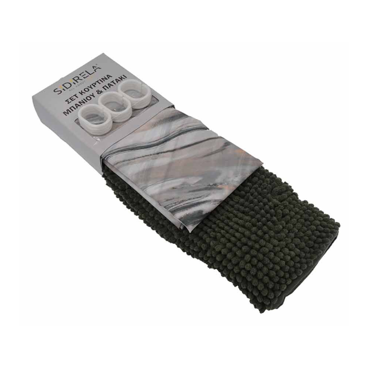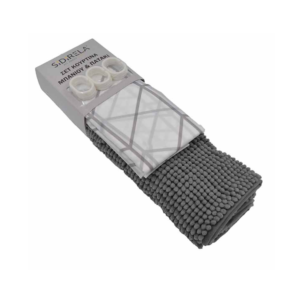 Sidirela Σετ Κουρτίνα Μπάνιου & Πατάκι Μπάνιου