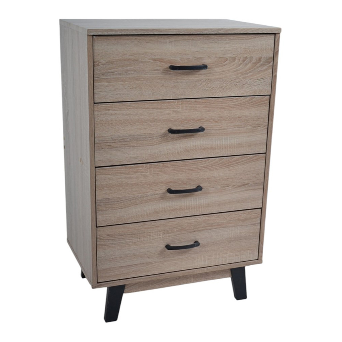 Συρταριέρα ξύλινη σε φυσικό χρώμα με τέσσερα βαθιά συρτάρια (εξωτερικό ύψος 13εκ. εσωτερικό 11εκ.), κομψά πόδια και χερούλια σε μαύρο χρώμα. Είναι λειτουργική με μοντέρνο σχεδιασμό, ιδανική για πρακτική αποθήκευση.