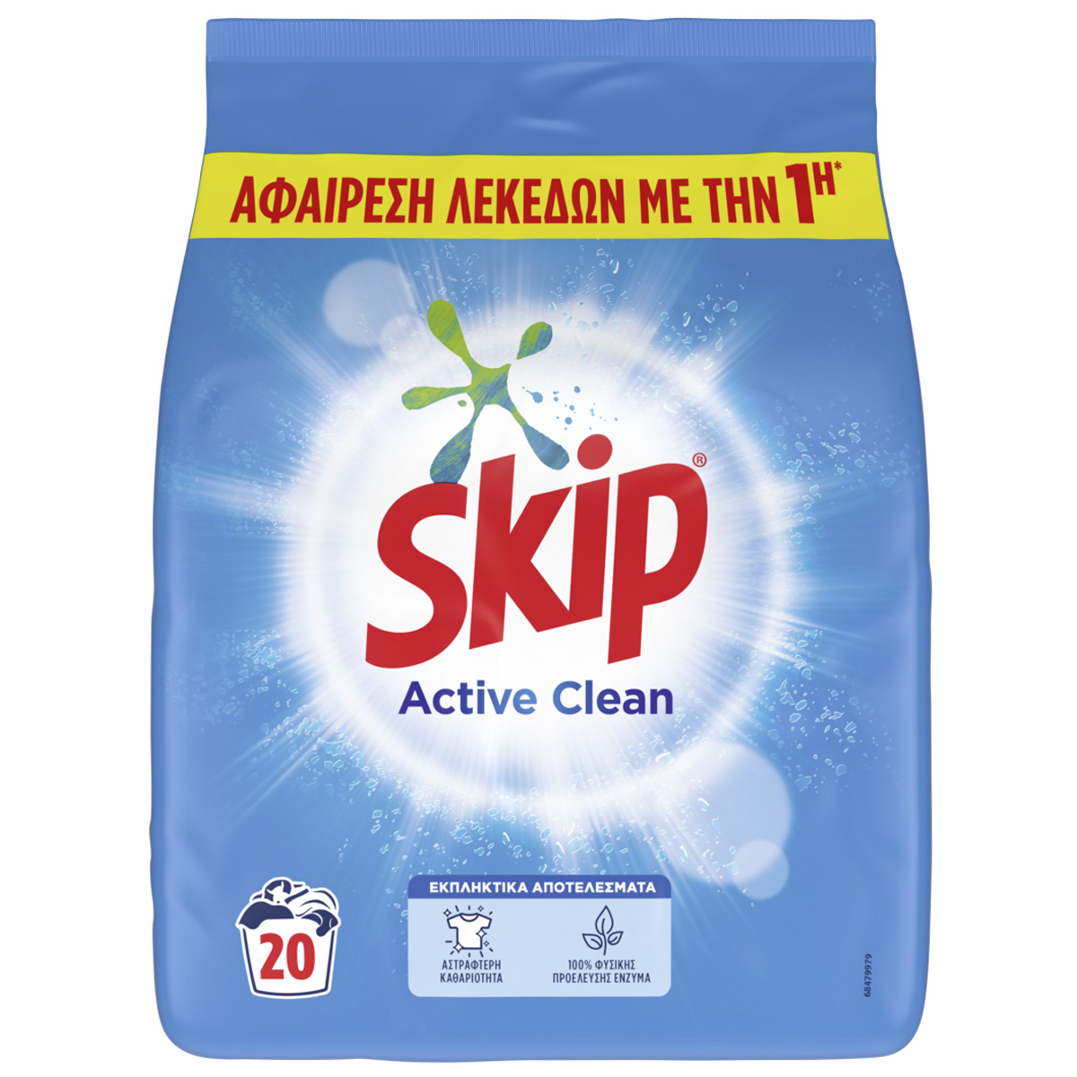 Skip Σκόνη Πλυντηρίου Ρούχων Active Clean 20 Μεζούρες 1300 gr