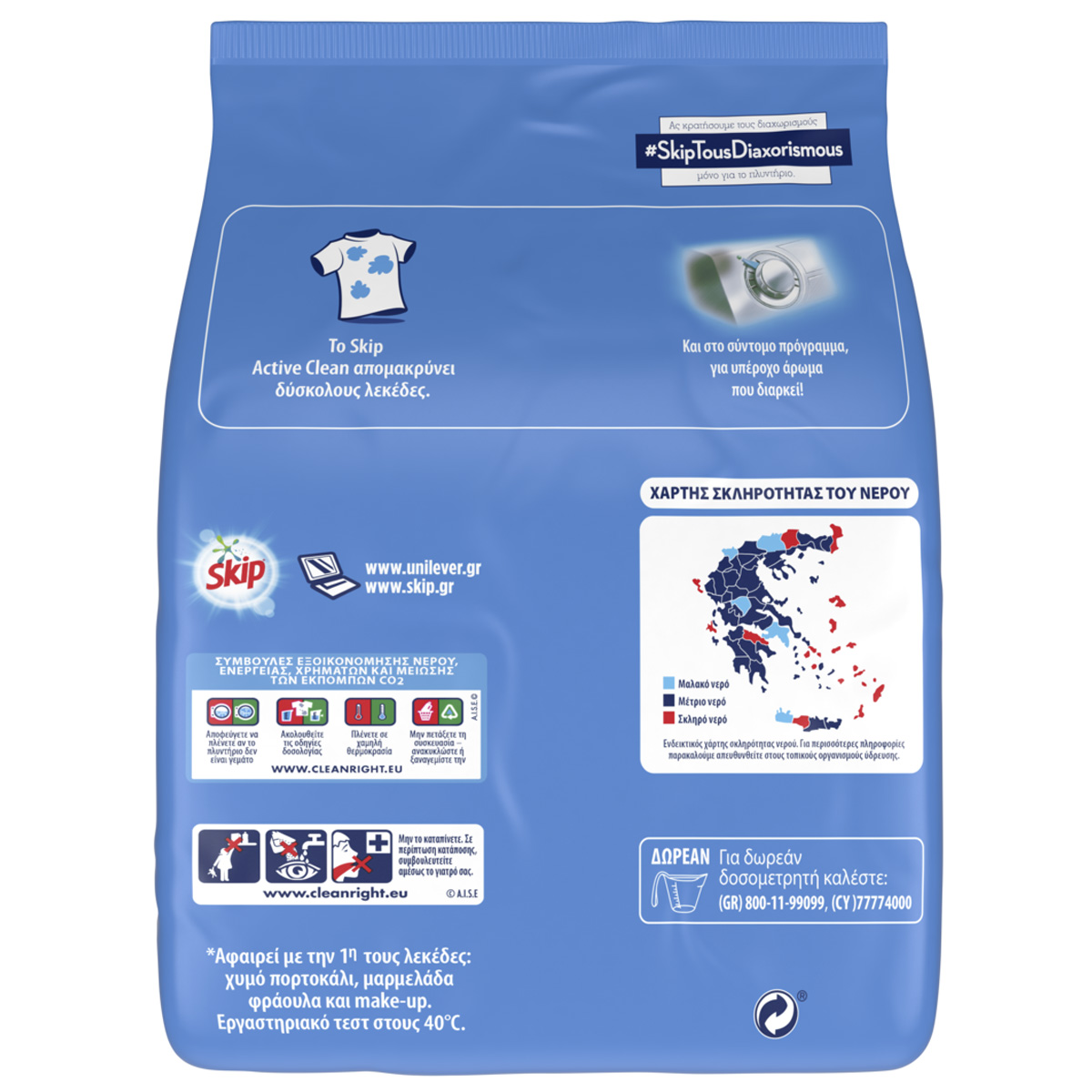 Το Skip Active Clean με 100% φυσικής προέλευσης ένζυμα χαρίζει εκπληκτικά αποτελέσματα με την πρώτη πλύση! Αφαιρεί δύσκολους λεκέδες χαρίζοντας στα ρούχα σας ασύγκριτη καθαριότητα! Η πρωτοπόρα σύνθεσή του το καθιστά αποτελεσματικο και στο σύντομο πρόγραμμα! Μια δοκιμή θα σας πείσει!