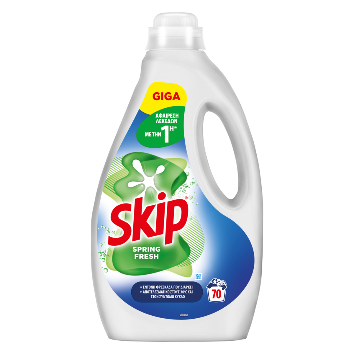 Το Skip Spring Fresh χαρίζει εκπληκτικά αποτελέσματα με την πρώτη πλύση! Αφαιρεί δύσκολους λεκέδες χαρίζοντας στα ρούχα σας ασύγκριτη καθαριότητα! Η πρωτοπόρα σύνθεσή του το καθιστά αποτελεσματικο και στο σύντομο πρόγραμμα! Μια δοκιμή θα σας πείσει!