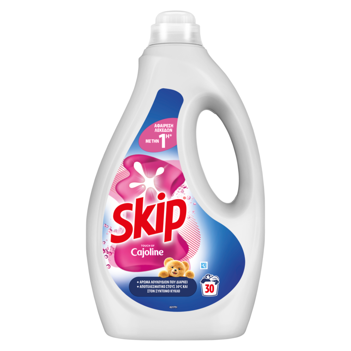 Το Skip με άρωμα Cajoline χαρίζει εκπληκτικά αποτελέσματα με την πρώτη πλύση! Αφαιρεί δύσκολους λεκέδες χαρίζοντας στα ρούχα σας άρωμα λουλουδιών που διαρκεί! Η πρωτοπόρα σύνθεσή του το καθιστά αποτελεσματικο και στο σύντομο πρόγραμμα! Μια δοκιμή θα σας πείσει!