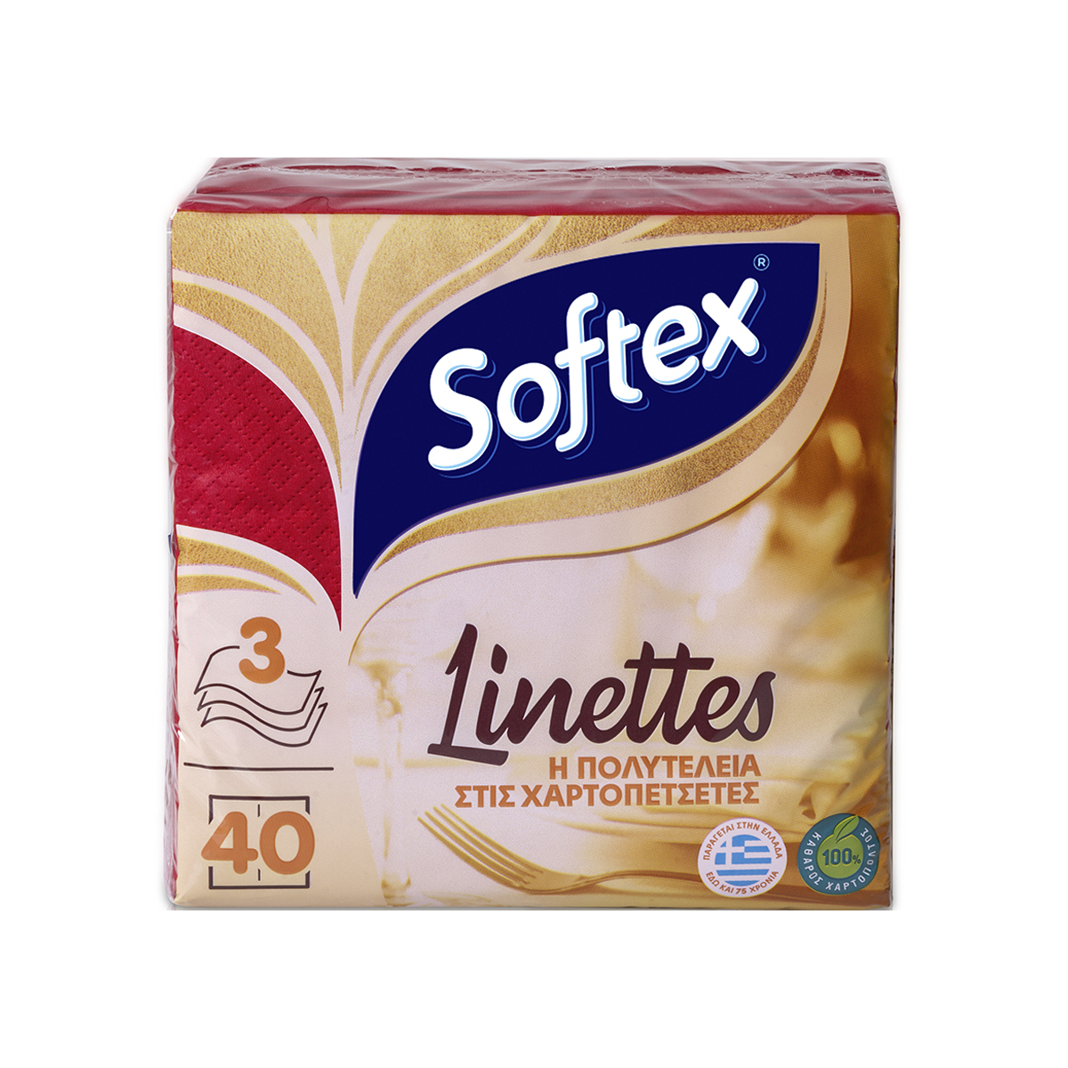 Softex Linettes Χαρτοπετσέτες Πολυτελείας Κόκκινες 33 x 33 40 Τεμάχια 183 gr