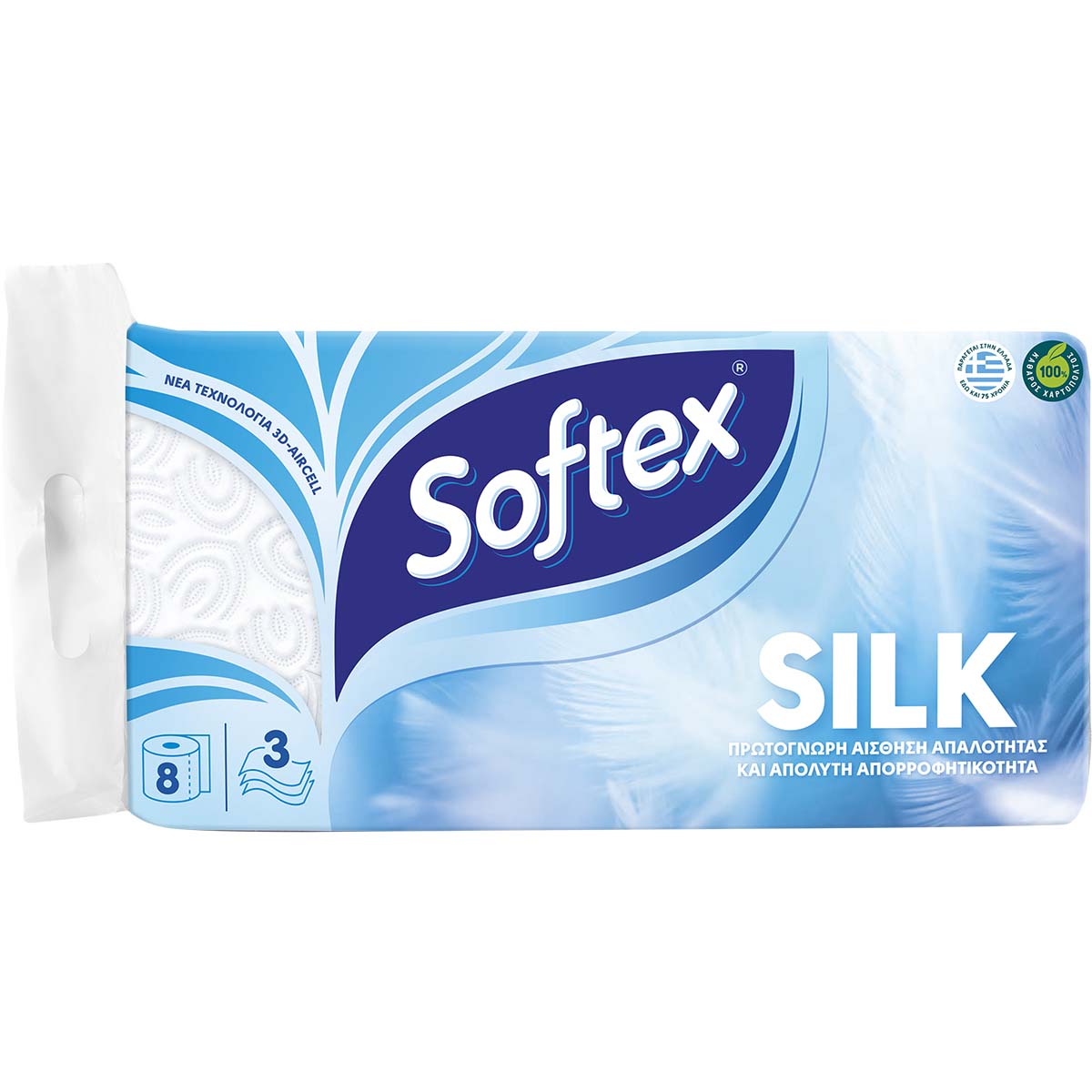 Softex Χαρτί Υγείας Silk 3φυλλο 8 Τεμάχια 760 gr