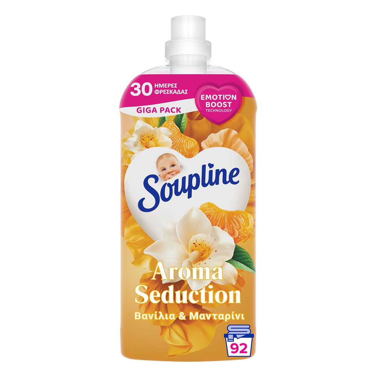 Το συμπυκνωμένο μαλακτικό Soupline Aroma Seduction Βανίλια & Μανταρίνι με αιθέρια έλαια επαναπροσδιορίζει το πλύσιμο των ρούχων με την επαναστατική 3D τεχνολογία αρώματος, έναν μοναδικό συνδυασμό 3 διαφορετικών τεχνολογιών, προσφέροντας μια εκπληκτική εμπειρία αισθήσεων καλύτερη από ποτέ.