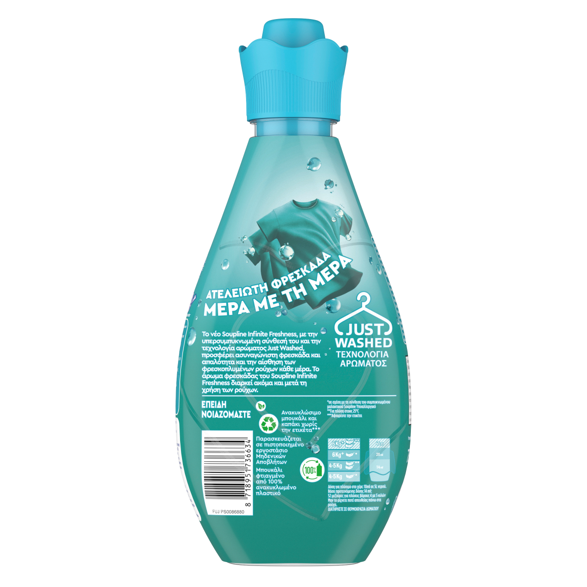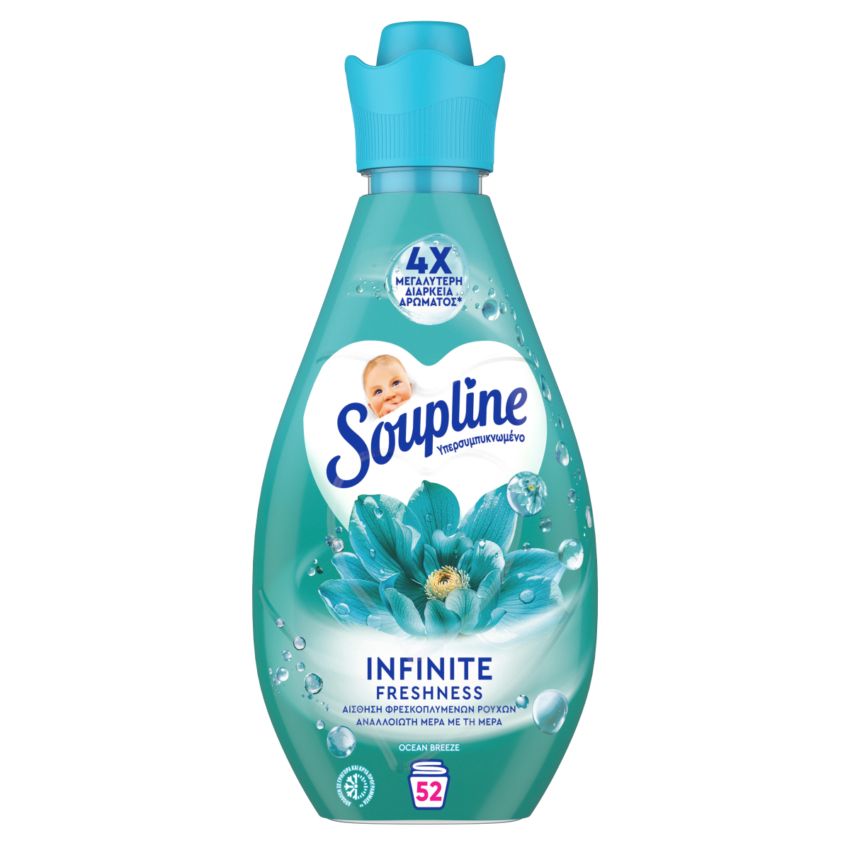 Το μαλακτικό ρούχων Soupline Infinite Ocean Breeze προσφέρει ασυναγώνιστη φρεσκάδα και απαλότητα. Απολαύστε άρωμα 4 φορές μεγαλύτερης διάρκειας και 2 φορές περισσότερα μαλακτικά συστατικά ανά σταγόνα.