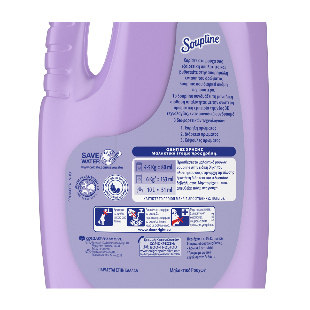 Χαρίστε στα ρούχα σας εξαιρετική απαλότητα και βυθιστείτε στην απαράμιλλη ένταση του αρώματος Soupline που διαρκεί ακόμη περισσότερο Το Soupline συνδυάζει τη μοναδική αίσθηση απαλότητας με την ανώτερη αρωματική εμπειρία της νέας 3D τεχνολογίας, έναν μοναδικό συνδυασμό 3 διαφορετικών τεχνολογιών: 1. Έκρηξη αρώματος 2. Διάρκεια αρώματος 3. Κάψουλες αρώματος.