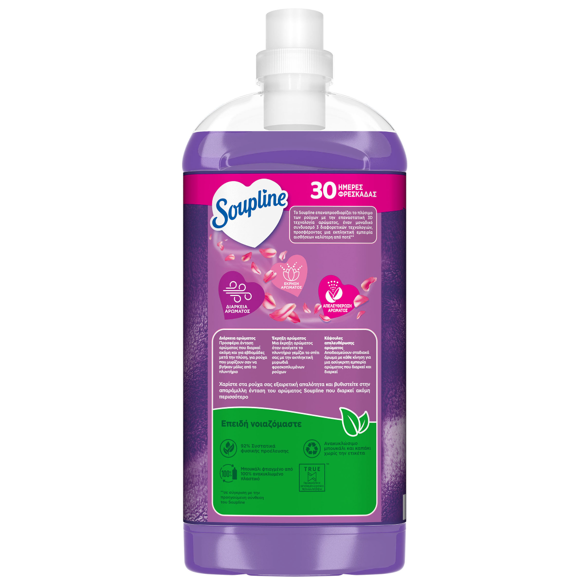 Το Συμπυκνωμένο Soupline Λεβάντα υγρό Μαλακτικό Ρούχων επαναπροσδιορίζει το πλύσιμο των ρούχων με την επαναστατική 3D τεχνολογία αρώματος, έναν μοναδικό συνδυασμό 3 διαφορετικών τεχνολογιών, προσφέροντας μια εκπληκτική εμπειρία αισθήσεων καλύτερη από ποτέ* Έχει 92% συστατικά φυσικής προέλευσης και ανακυκλώσιμο μπουκάλι κατασκευασμένο από 100% ανακυκλωμένο πλαστικό.*σε σύγκριση με την προηγούμενη σύνθεση του Soupline.