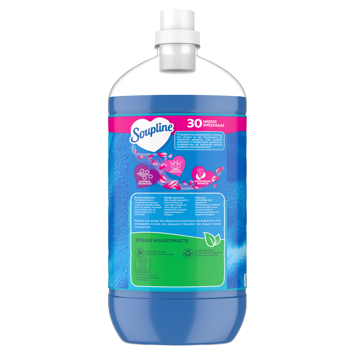 Το Συμπυκνωμένο Soupline Mistral υγρό Μαλακτικό Ρούχων επαναπροσδιορίζει το πλύσιμο των ρούχων με την επαναστατική 3D τεχνολογία αρώματος, έναν μοναδικό συνδυασμό 3 διαφορετικών τεχνολογιών, προσφέροντας μια εκπληκτική εμπειρία αισθήσεων καλύτερη από ποτέ*. Έχει 92% συστατικά φυσικής προέλευσης και ανακυκλώσιμο μπουκάλι κατασκευασμένο από 100% ανακυκλωμένο πλαστικό.*σε σύγκριση με την προηγούμενη σύνθεση του Soupline.