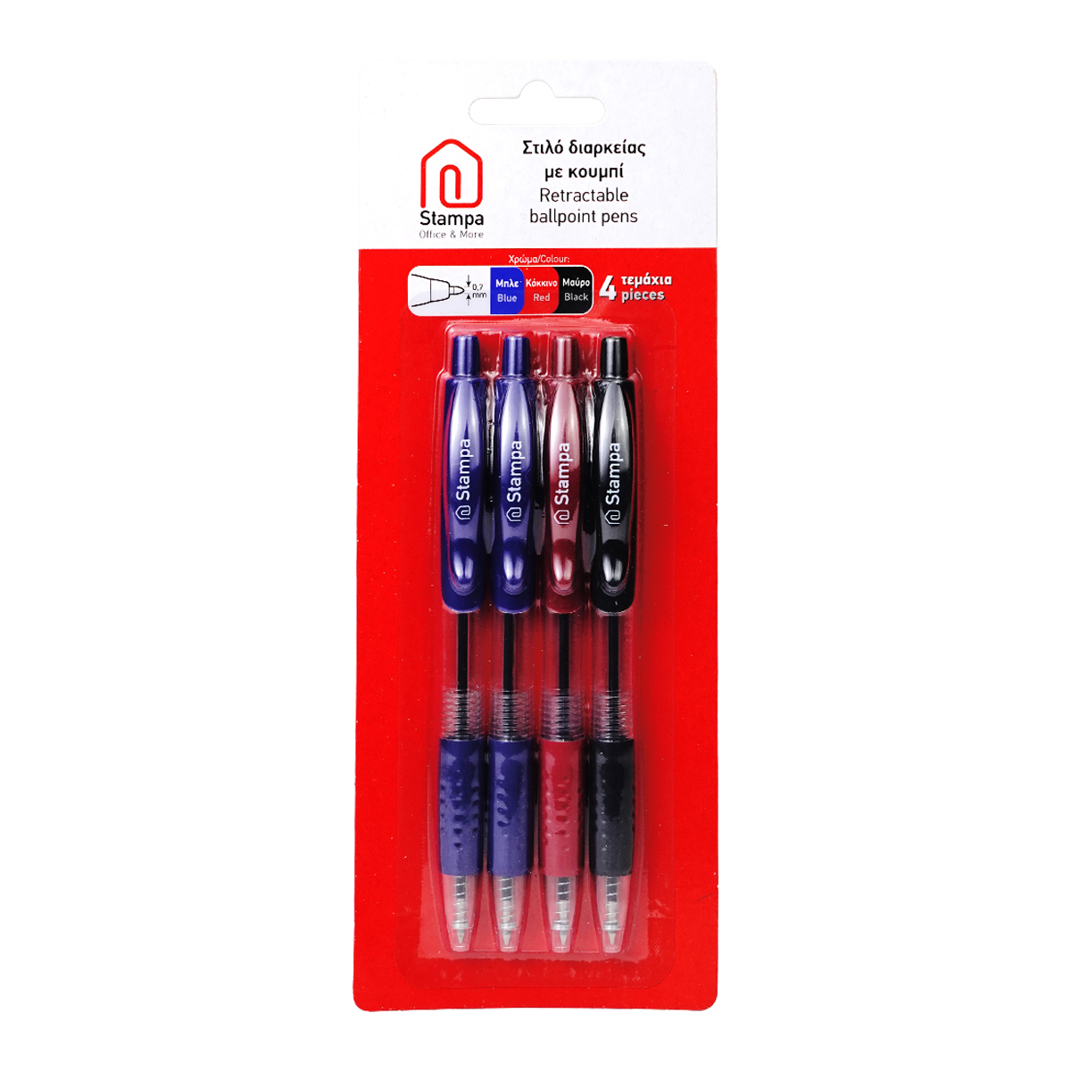 Στυλό Διαρκείας Με Κουμπί Λεπτή Μύτη (0.7mm) 4 Τεμάχια