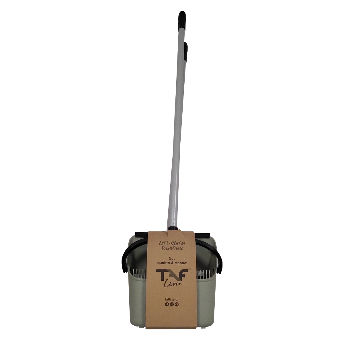 Σετ σκούπα και φαράσι ΤAF line εργονομικά σχεδιασμένο που, απαιτεί ελάχιστο χώρο αποθήκευσης. Το αναδιπλούμενο φαράσι με το μακρύ βραχίονα διαθέτει οδοντωτή άκρη που, που διευκολύνει τον καθαρισμό της σκούπας. Η σκούπα με τον εργονομικό βραχίονα και το ευλύγιστο ψηλό πέλος από ανακυκλωμένα υλικά είναι ιδιαίτερα εύχρηστη και λειτουργική καθώς φτανει χωρίς κόπο και στην πιο δύσκολη γωνία.