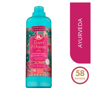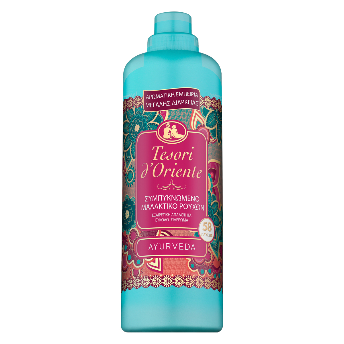 Τα μεθυστικά και ξεχωριστά αρώματα της μάρκας Tesori D'Oriente αγκαλιάζουν μοναδικά τα ρούχα και τα λευκά σας είδη. Ανακαλύψτε το άρωµα Ayurveda που περιέχει ντελικάτες νότες εσπεριδοειδών εµπλουτισµένες µε αισθησιακό πατσουλί και αιθέριο έλαιο Amla, ιδιαίτερα συστατικά που χαρίζουν ένα µοναδικό άρωµα ευεξίας και χαλάρωσης. Η κρεµώδης σύνθεση χωρίς χρωστικές του Tesori d' Oriente, αποδεσµεύει σταδιακά το άρωµα χάρη στην τεχνολογία των πολύτιµων µικροκαψουλών, διατηρώντας απαλά τα ρούχα και διευκολύνοντας έτσι το σιδέρωµά τους.