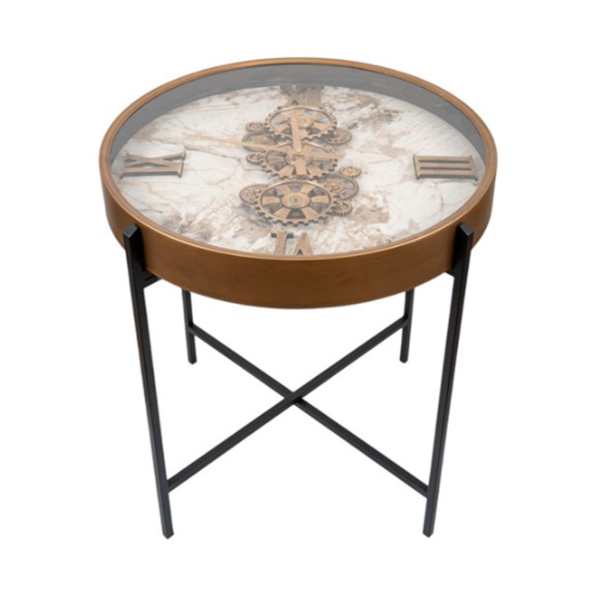 Τραπεζι Μεταλλικό Ρολόι Χρυσό Ματ Με Μπεζ 64 x 64 x 76 cm