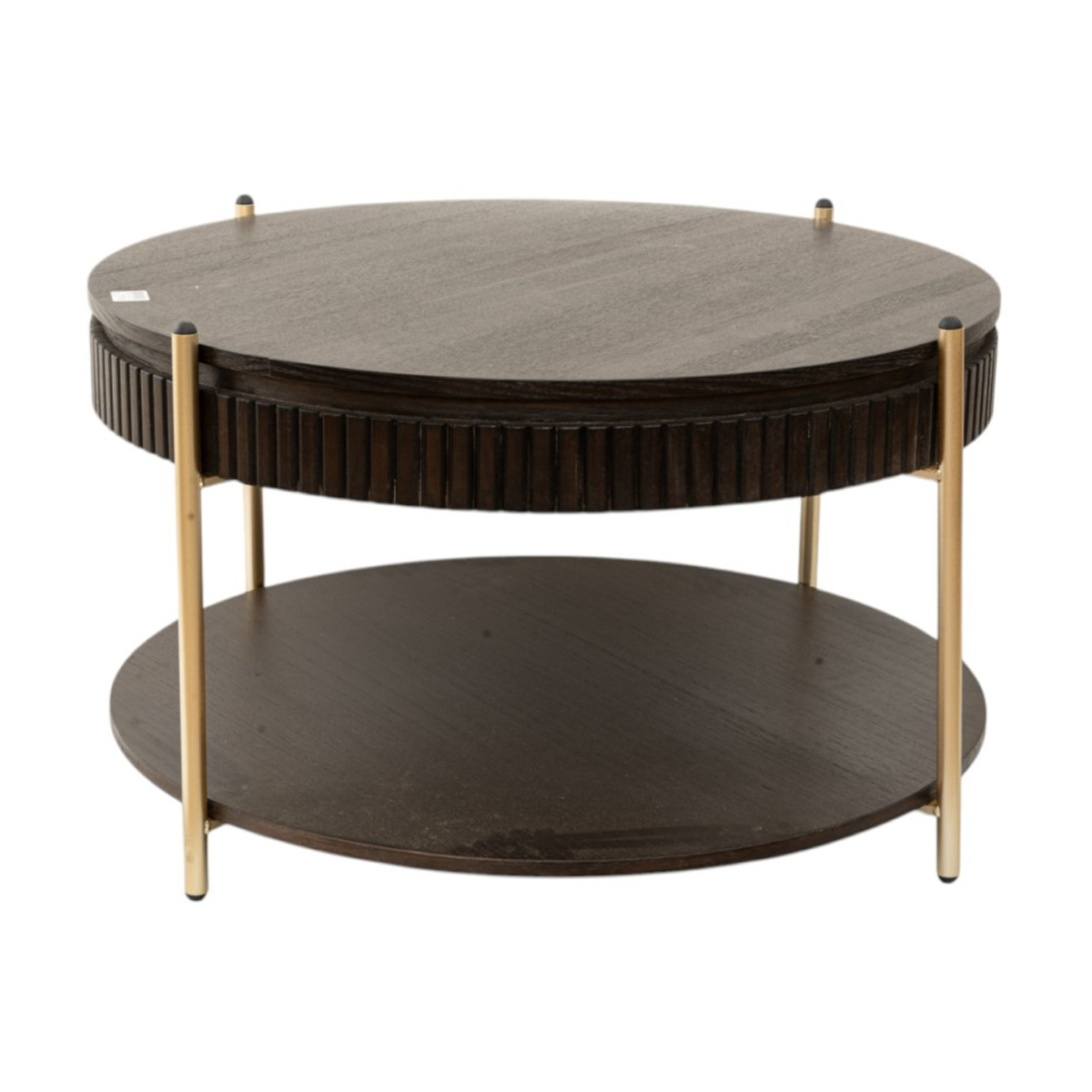 Τραπέζι Σαλονιού Στρογγυλό Καφέ Με Μεταλλικά Χρυσά Πόδια 80 x 80 x 40 cm