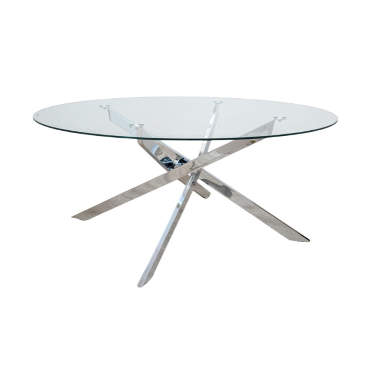 Τραπέζι Στρογγυλό Με Τζάμι & Ασημένια Μεταλλικά Πόδια 120 x 75 cm