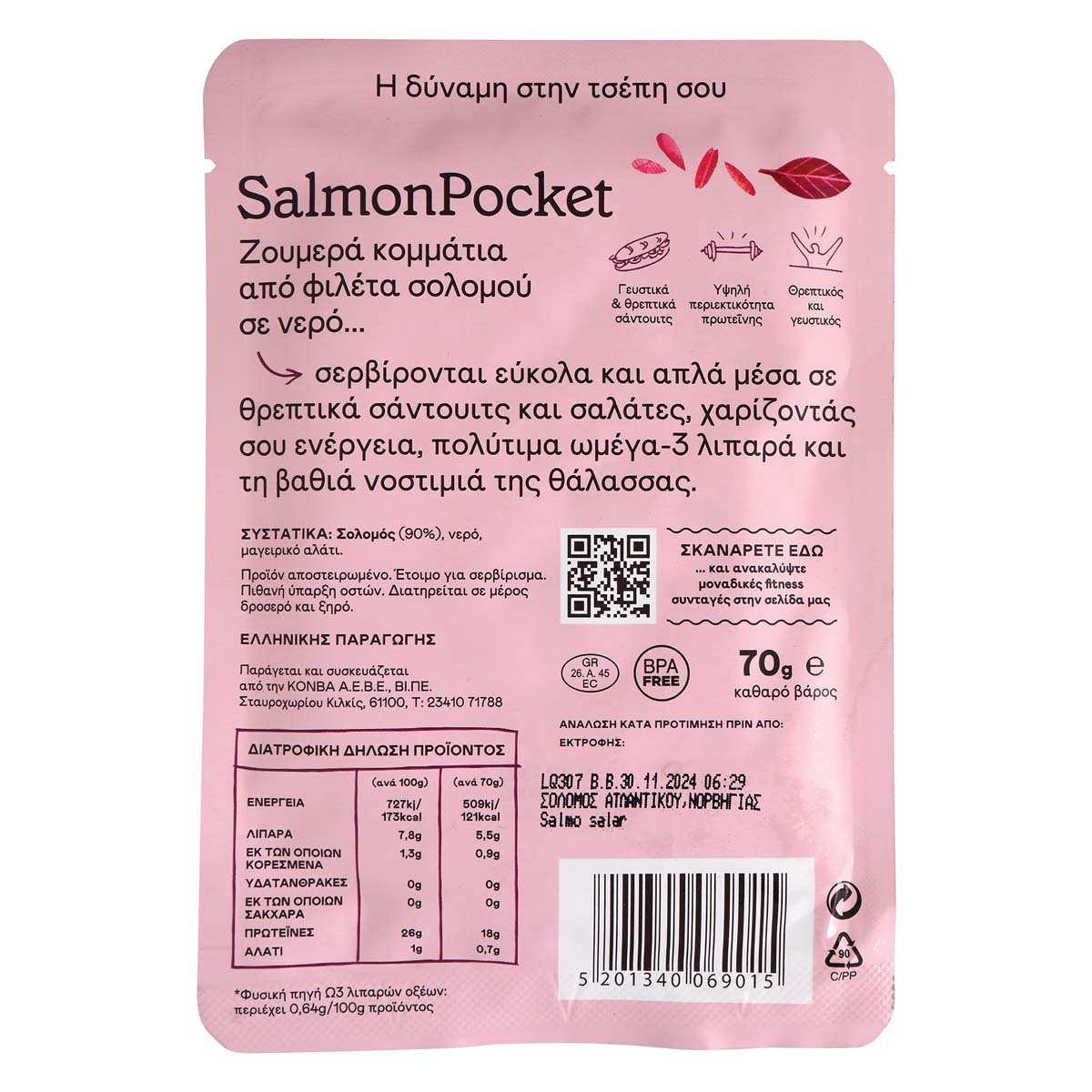 Ζουμερά κομμάτια από φιλέτα σολομού σε νερό σε μια εύκολη και πρακτική συσκευασία που δεν χρειάζεται στράγγισμα. Σερβίρονται εύκολα και απλά μέσα σε θρεπτικά σάντουιτς και σαλάτες, χαρίζοντας ενέργεια, πολύτιμα ώμεγα-3 λιπαρά και την βαθιά νοστιμιά της θάλασσας.
