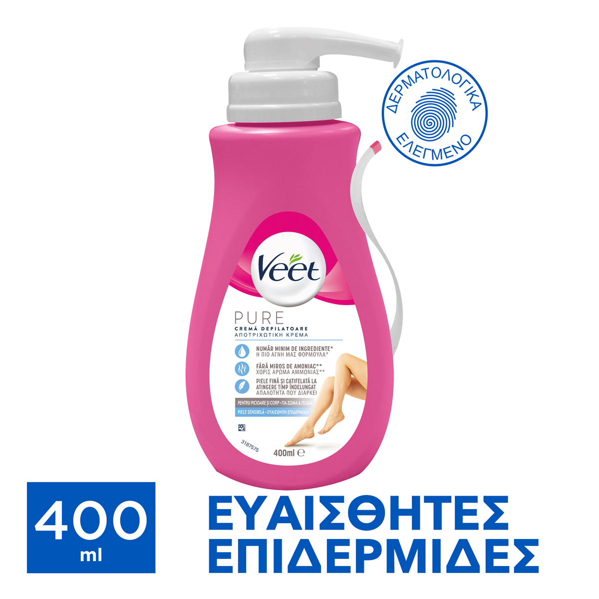 Η Veet® Αποτριχωτική Κρέμα για Ευαίσθητο Δέρμα δρα κοντά στη ρίζα, ακόμη και σε κοντές τρίχες, προσφέροντάς σας μεταξένια απαλότητα για έως και μία εβδομάδα. Απολαύστε μεταξένια επιδερμίδα και υπέροχο άρωμα, αφαιρώντας αποτελεσματικά τις τρίχες. Η Veet όχι μόνο ενυδατώνει την επιδερμίδα σας για έως και 24 ώρες, αλλά είναι κλινικά αποδεδειγμένο ότι προσφέρει έως και 7 μέρες λειότητας. Έτσι, το δέρμα σας δεν θα είναι απλώς απαλό, αλλά λείο και μεταξένιο, θα έχει όλα τα απαραίτητα θρεπτικά συστατικά, ενώ και οι τρίχες που ξαναβγαίνουν θα είναι πιο απαλές.