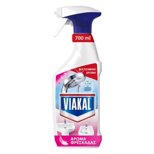 Το Viakal Fresh με Άρωμα Φρεσκάδας όχι μόνο αφαιρεί τα άλατα, τα υπολείμματα σαπουνιού και τα στίγματα νερού, αλλά επιπλέον αποτρέπει την επανεμφάνιση των αλάτων χάρη στην τεχνολογία anti-droplet. Ιδανικό για συχνή χρήση στο μπάνιο, προσφέρει καθημερινά λάμψη στις επιφάνειες. Η ειδική του σύνθεση δημιουργεί ένα φράγμα που εμποδίζει την επανεμφάνιση των στιγμάτων νερού, ακόμα και σε περιοχές με σκληρό νερό. Επειδή η σύνθεσή του σέβεται τις επιφάνειές σας, μπορεί να χρησιμοποιείται καθημερινά.