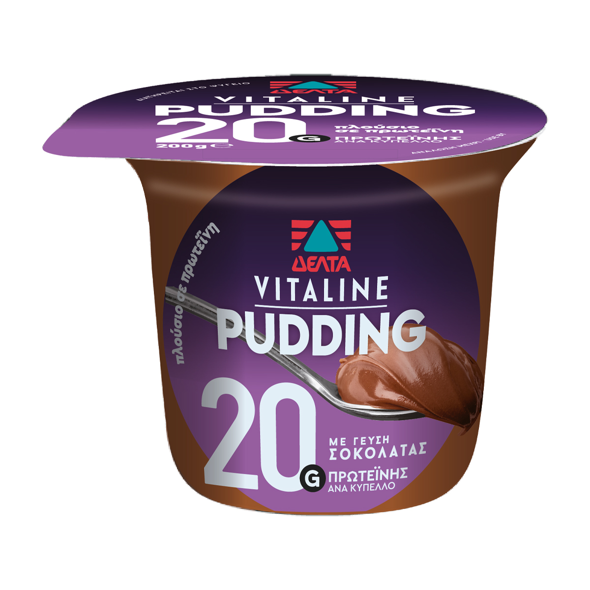 Επιδόρπιο γάλακτος με γεύση σοκολάτας, υψηλής περιεκτικότητας σε πρωτεΐνες. Με γλυκαντικά.