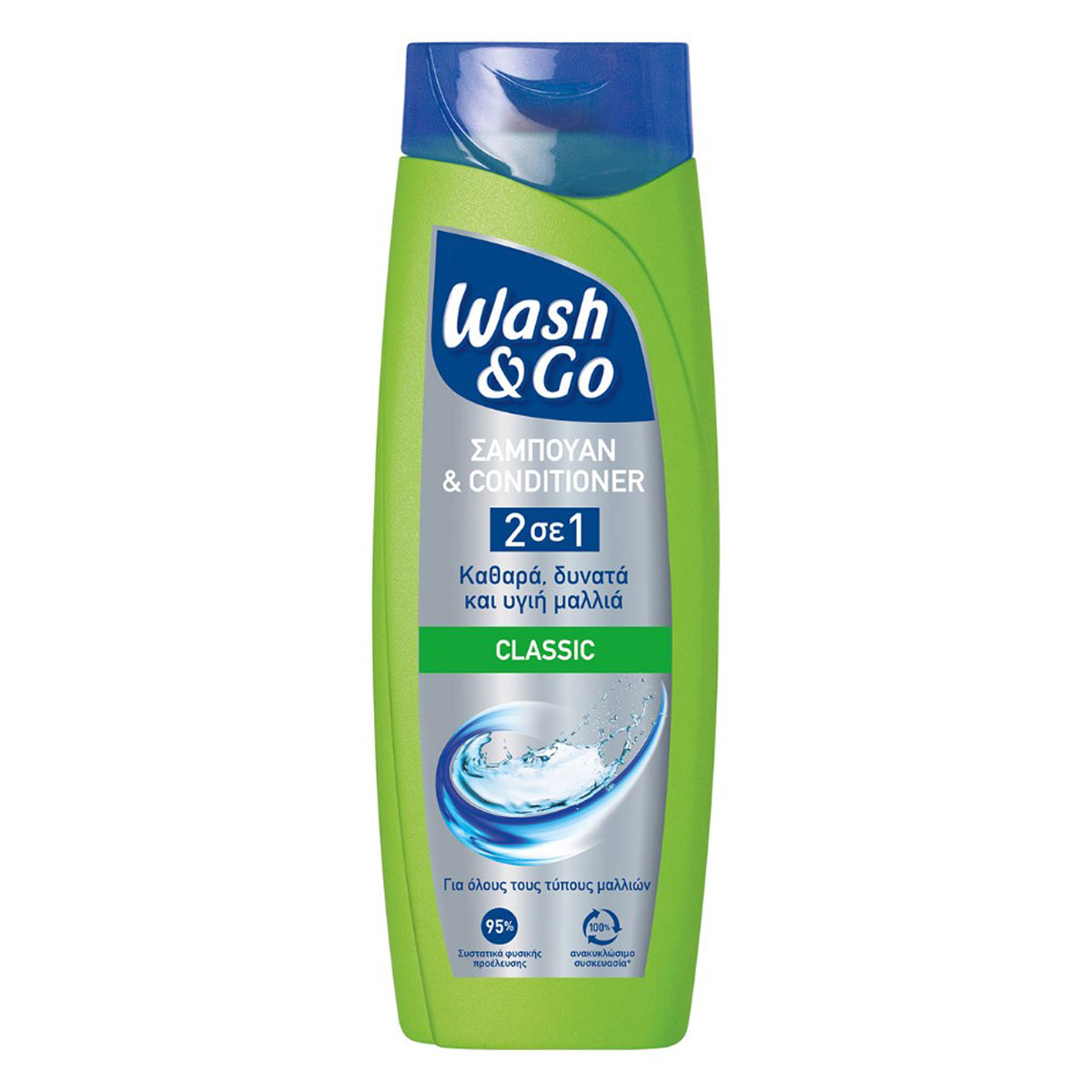 Το Wash&Go Classic 2 σε 1 είναι η ιδανική λύση για καθαρά, δυνατά και μαλλιά με υγιή όψη. Με 95% συστατικά φυσικής προέλευσης, η σύνθεσή του καθαρίζει απαλά τα μαλλιά σας, χαρίζοντας βαθιά ενυδάτωση και προστασία. Ιδανικό για όλους τους τύπους μαλλιών.