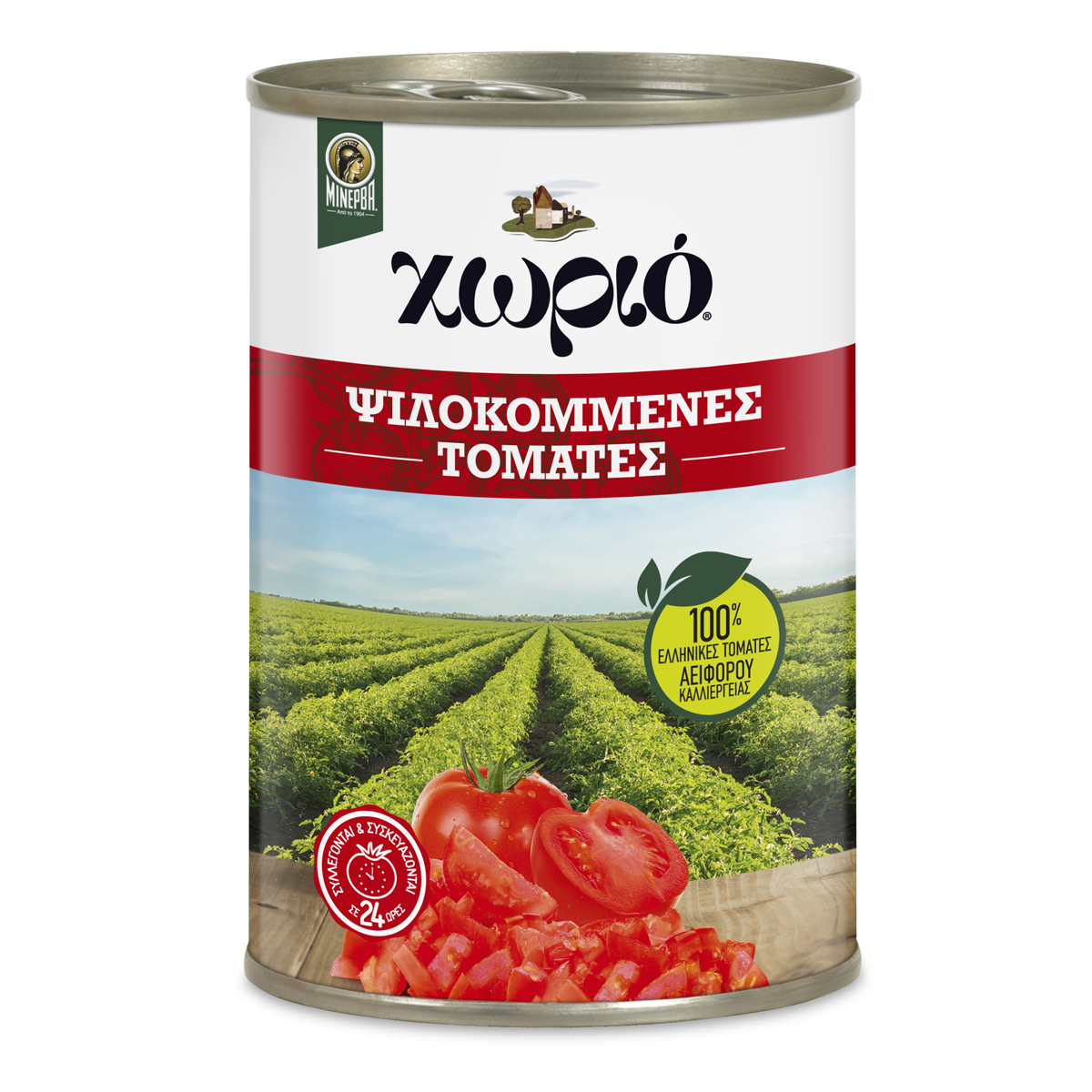 Ψιλοκομμένες αποφλοιωμένες τομάτες σε ελαφρά συμπυκνωμένο χυμό τομάτας.