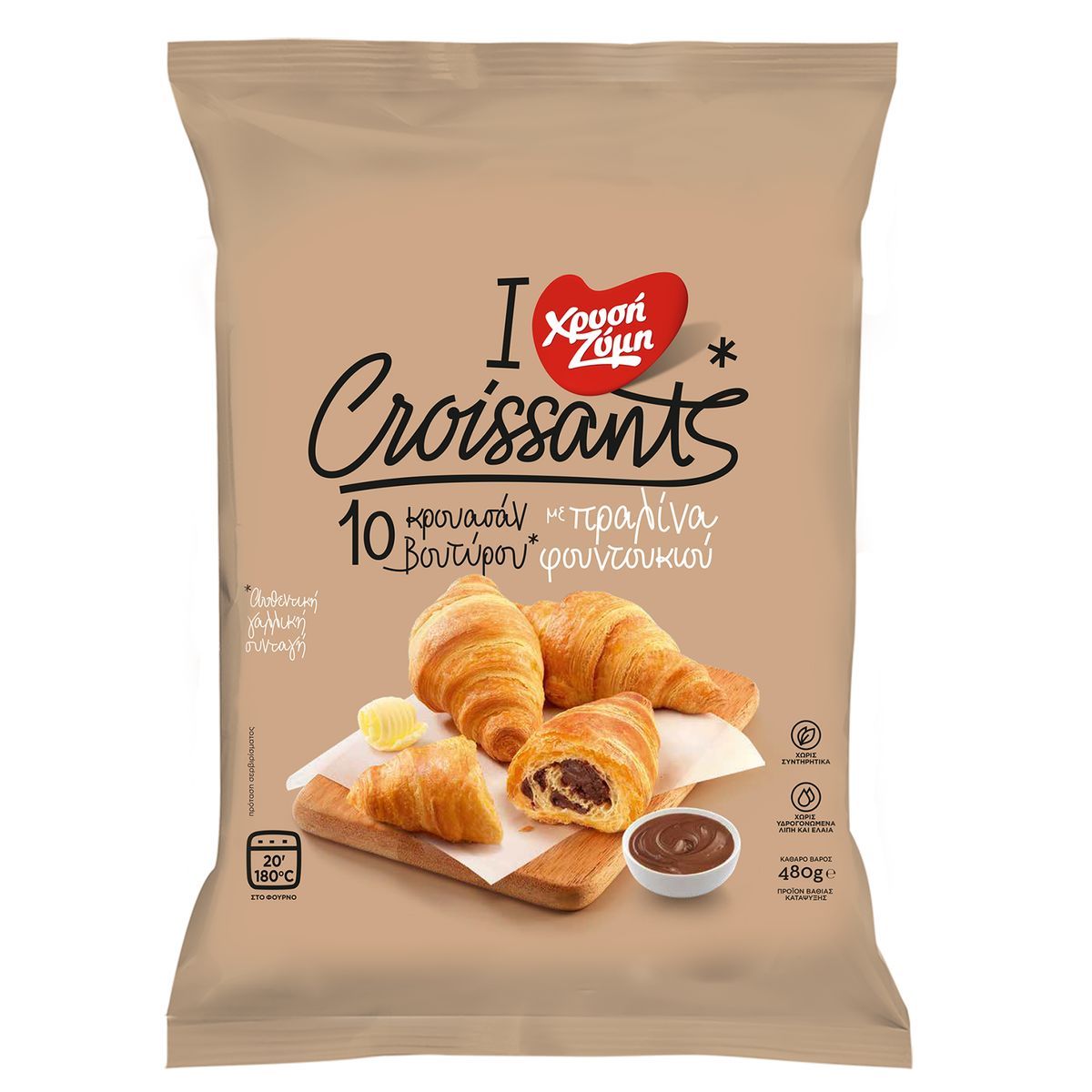 Είναι απόλαυση να ψήνεις λαχταριστά Croissants τη στιγμή που τα Θες! Η Χρυσή Ζύμη δημιουργεί για εσάς τα πιο νόστιμα και αφράτα Crοissants βουτύρου με πραλίνα φουντουκιού! Φτιαγμένα με αυθεντική γαλλική συνταγή και εκλεκτό βούτυρο, θα ξετρελάνουν μικρούς και μεγάλους! Η πλούσια γέμιση τους από λαχταριστή πραλίνα φουντουκιού, γίνεται ένα με την αέρινη ζύμη τους που φουσκώνει, ροδοιμήνεται και τραγανίζει, χαρίζοντας στα Croissants το αφράτο σώμα και τη χρυσορόδινη κρούστα που μοσκοβολά βούτυρο. Ετοιμάστε τα γρήγορα και εύκολα στον φούρνο σας σε μόλις 20 λεπτά, και χαρείτε την πλούσια γεύση τους όποτε αγαπάτε, με αυτούς που αγαπάτε! Χρυσή Ζύμη. Δεν έτυχε…Πέτυχε!