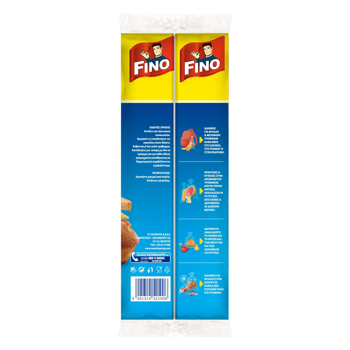 Σακούλες τροφίμων FINO ιδανικές για φύλαξη και μεταφορά τροφίμων. Η συσκευασία περιέχει 50 σακούλες τροφίμων μικρού μεγέθους (1L) 17x24cm.